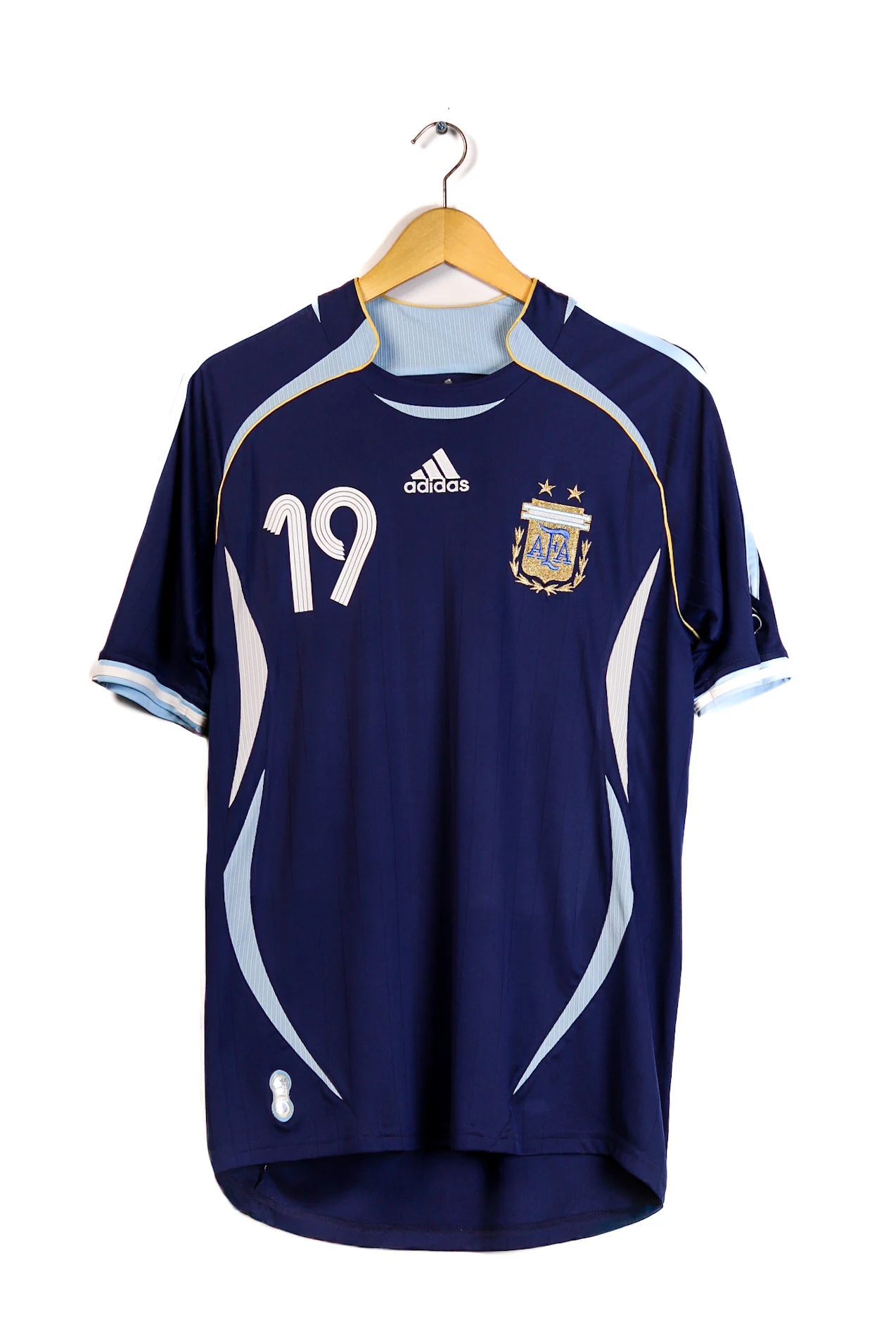 Description: Argentina away shirt from the Teamgeist era, marking Lionel Messi’s first appearance at World Cup.