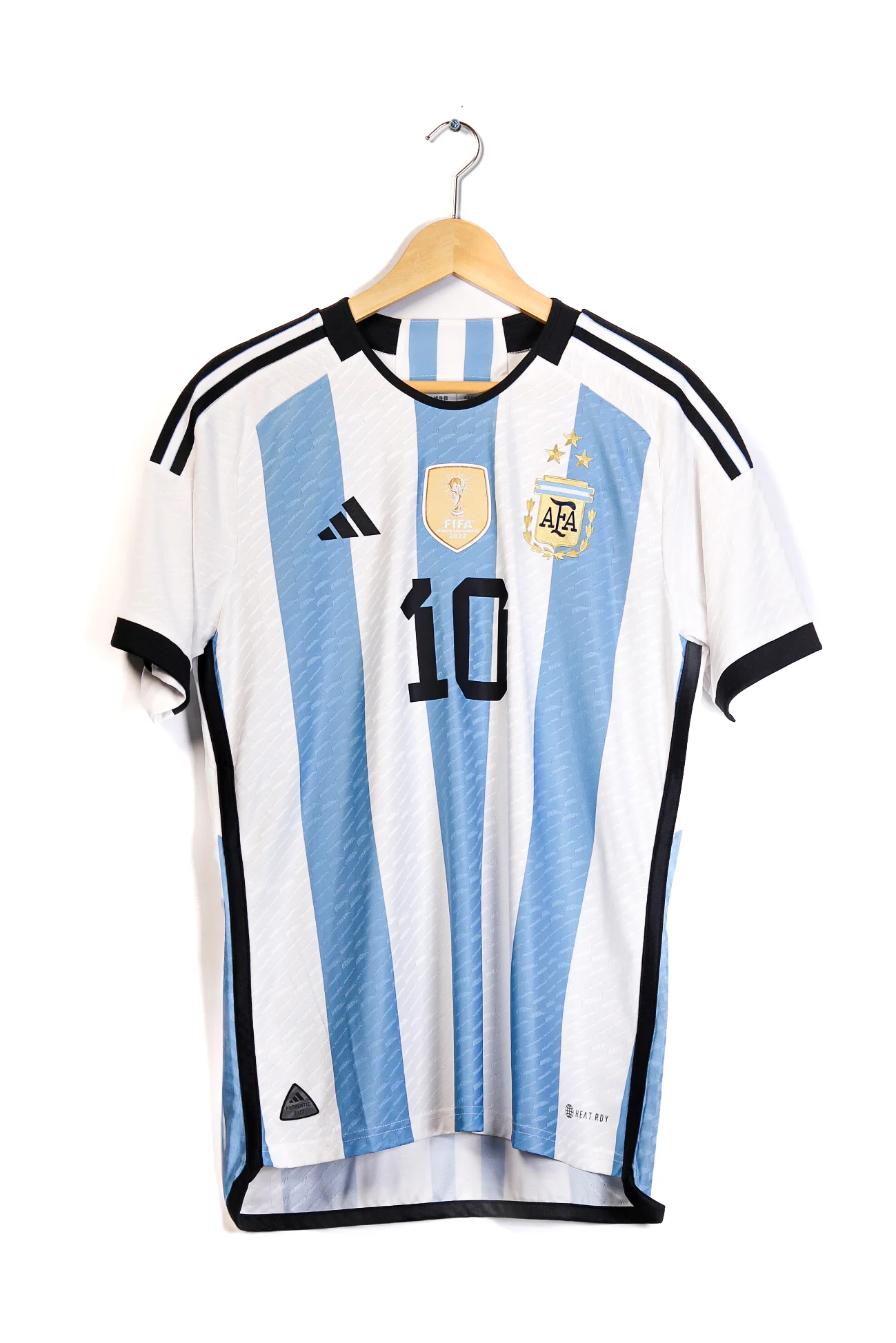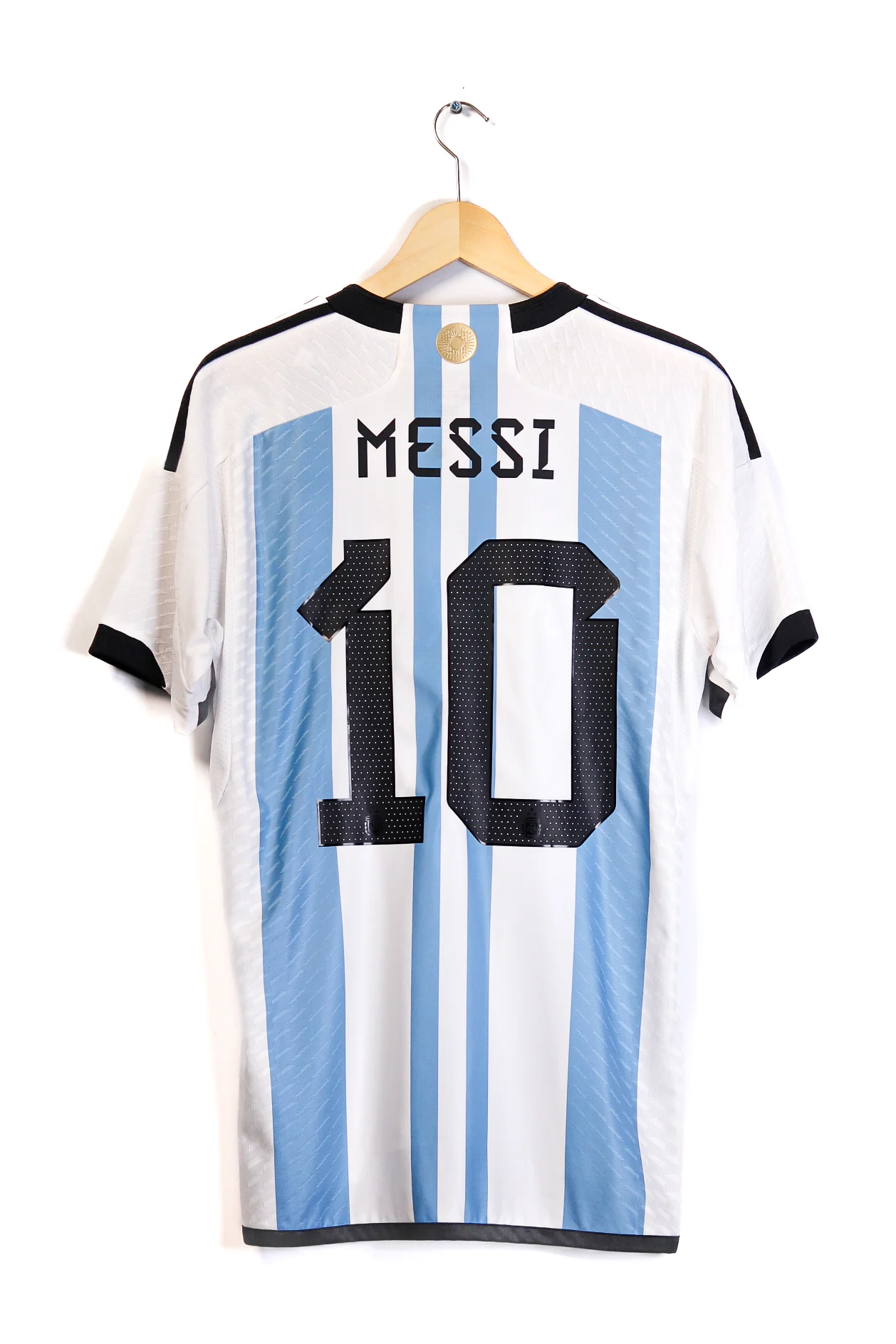 Description: Argentina home shirt celebrating the Qatar World Cup triumph, with Lionel Messi at its heart during an unforgettable final that crowned Argentina world champions.