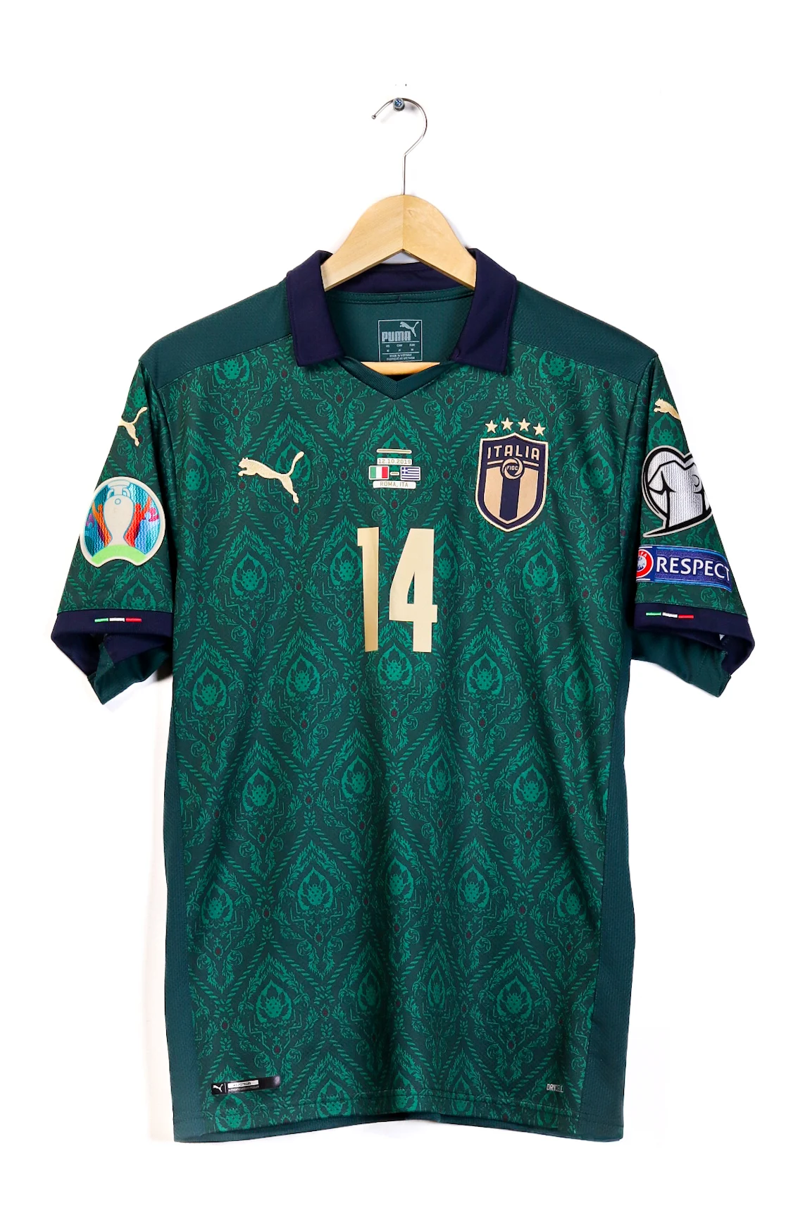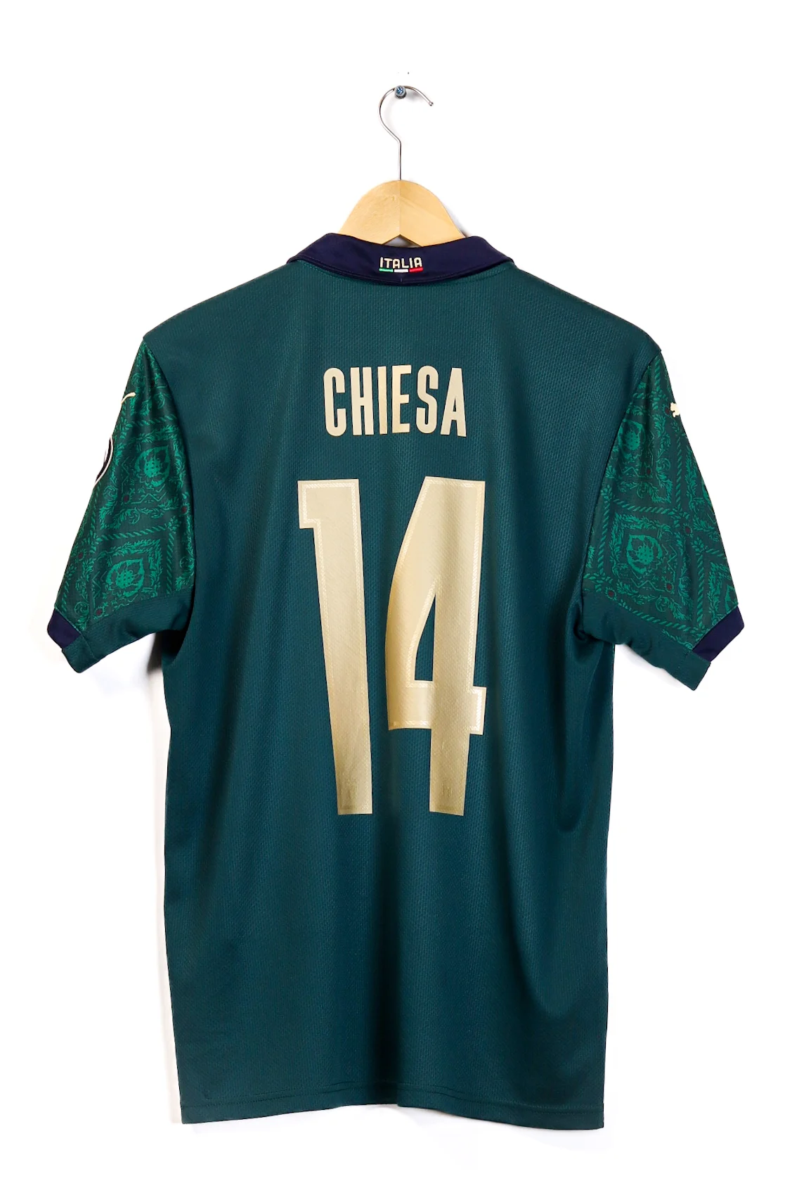 Description: Italy’s 2019–20 third kit reflects a transitional generation, with Federico Chiesa emerging as a symbol of speed and vertical play.