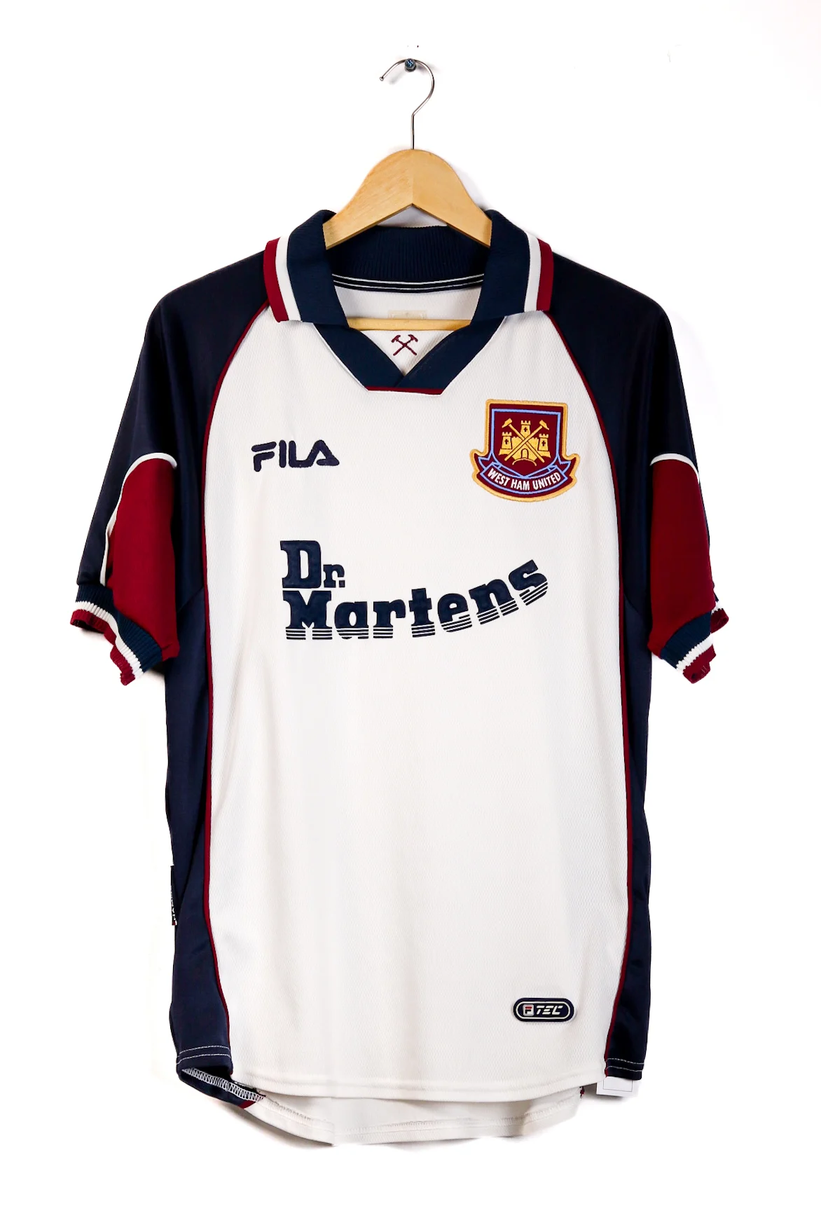 Description: West Ham 1999–2000 away, Ferdinand: London grit with youth promise—defending first, learning fast.